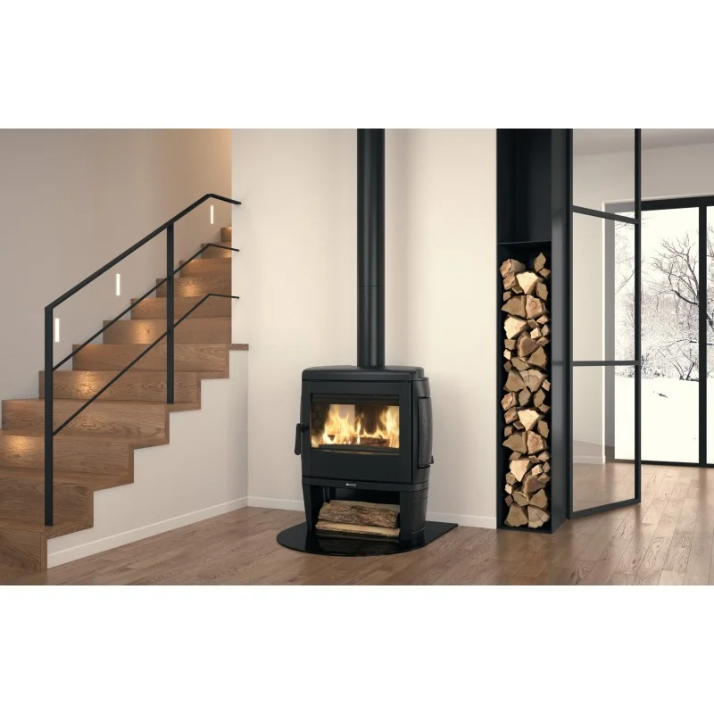 La large vitre panoramique offre une belle vision des flammes, et le corps en fonte accumule la chaleur pour la restituer progressivement.